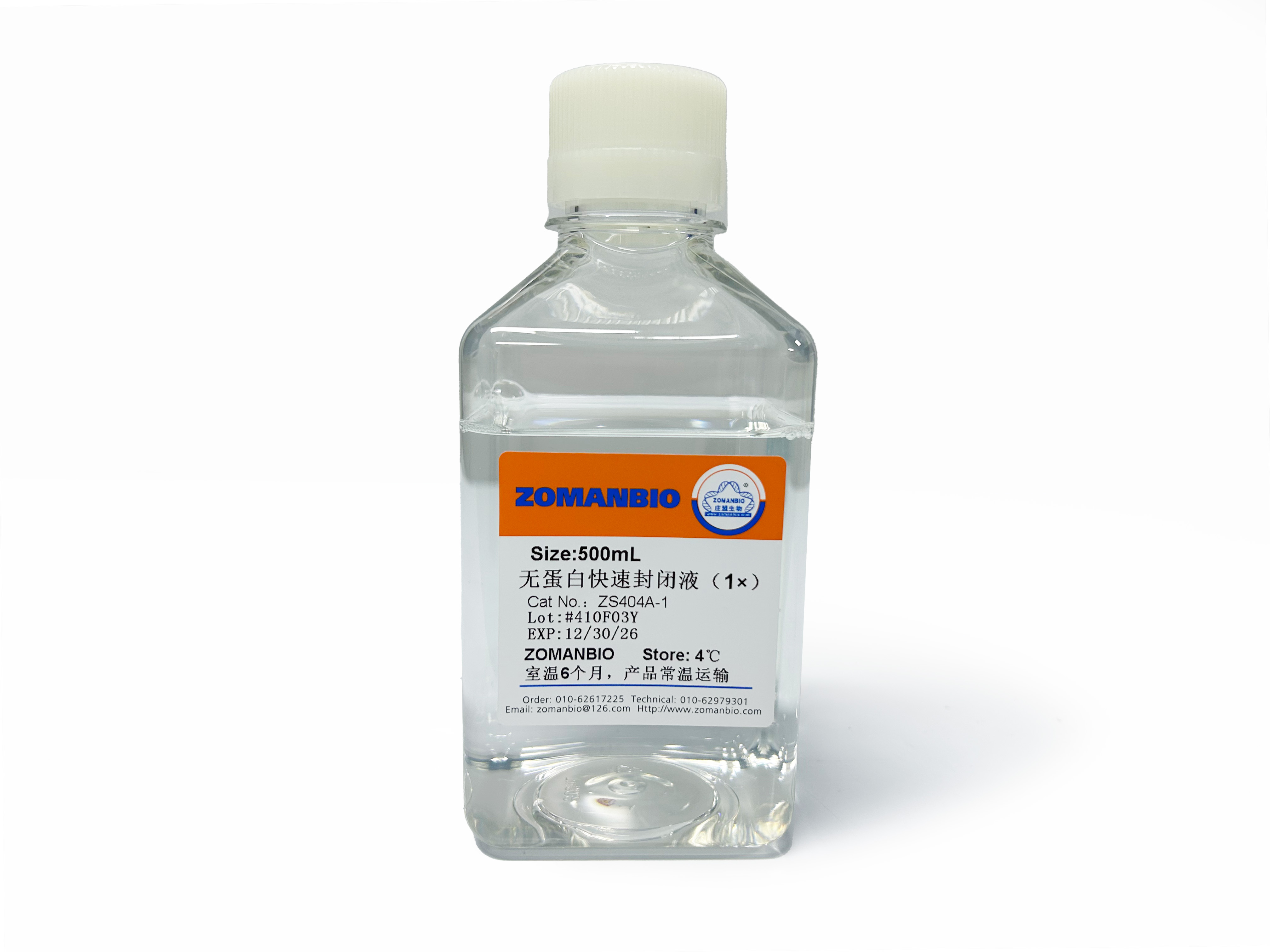 本品為Western Blot 轉印膜快速高效封閉液。采用無蛋白配方,10min即可快速高效地封閉膜上多余的結合部位,避免抗體與膜的非特異結合,最大程度地降低背景并提高信噪比。另外,本封閉液無內源的磷酸化蛋白及生物素,對磷酸化特異抗體及生物素檢測也不會產生干擾。實驗表明,本封閉液對許多抗體都有不同程度的信號增強作用,然而這種信號增強作用因抗體而異,對某一特定抗體,并不一定具有確定的信號增強作用。封閉液中不含有毒的疊氮化納或硫柳汞鈉等防腐劑,不會干擾HRP活性,安全系數很高,也不影響特異性磷酸化、乙?;⒓谆贵w檢測。