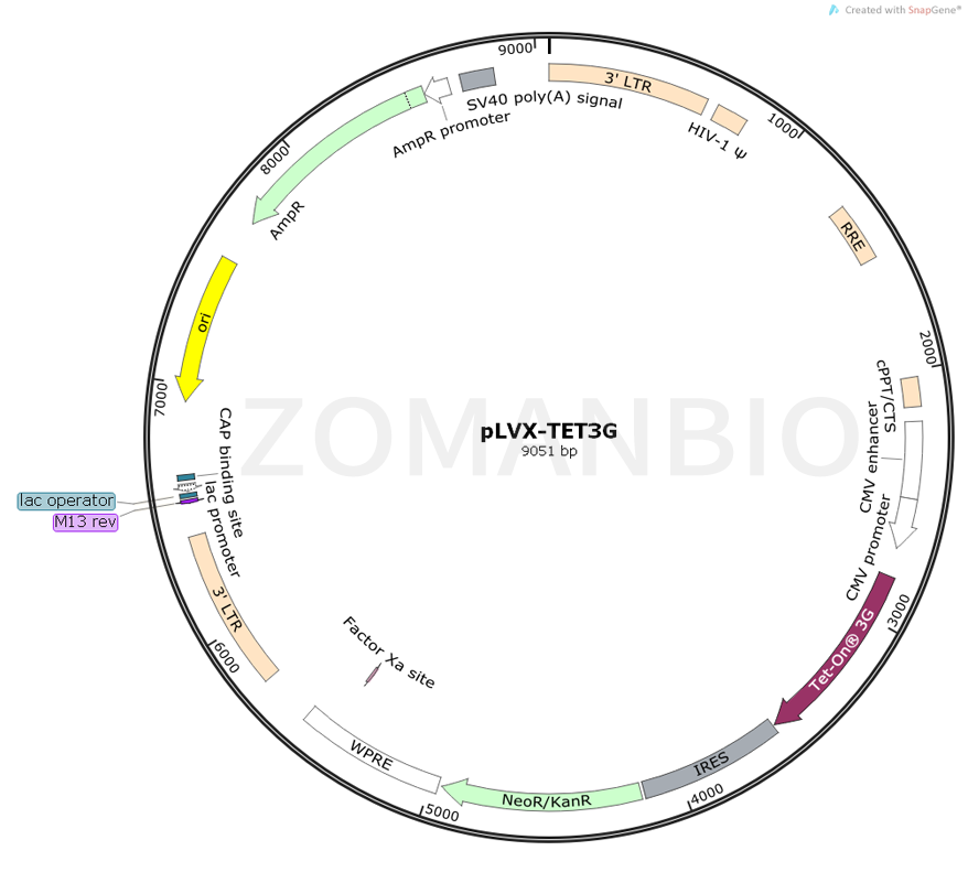 plvx-tet3g是穩(wěn)定表達(dá)對3G轉(zhuǎn)錄激活蛋白Tet調(diào)控載體,作為任何lenti-x?部分Tet對3G誘導(dǎo)表達(dá)系統(tǒng)。3G誘導(dǎo)表達(dá)系統(tǒng)的lenti-x TET允許病毒在各種各樣的哺乳動物細(xì)胞中的你的興趣基因的遞送和誘導(dǎo)表達(dá)。表達(dá)的靶細(xì)胞Tet對3G的反式激活蛋白從plvx-tet3g和含有目的基因的控制下的一個ptre3g啟動子將高水平表達(dá)你的基因,只有在存在強(qiáng)力霉素培養(yǎng)。