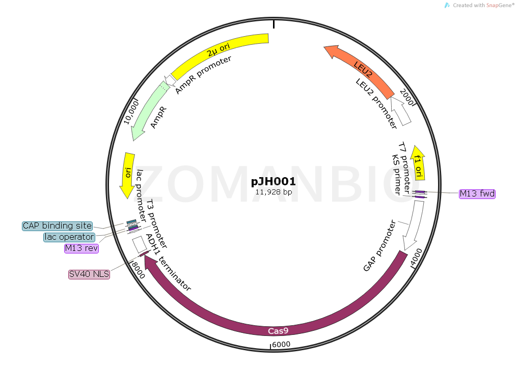 pJH001是一個(gè)酵母CAS9表達(dá)基因敲除質(zhì)粒。