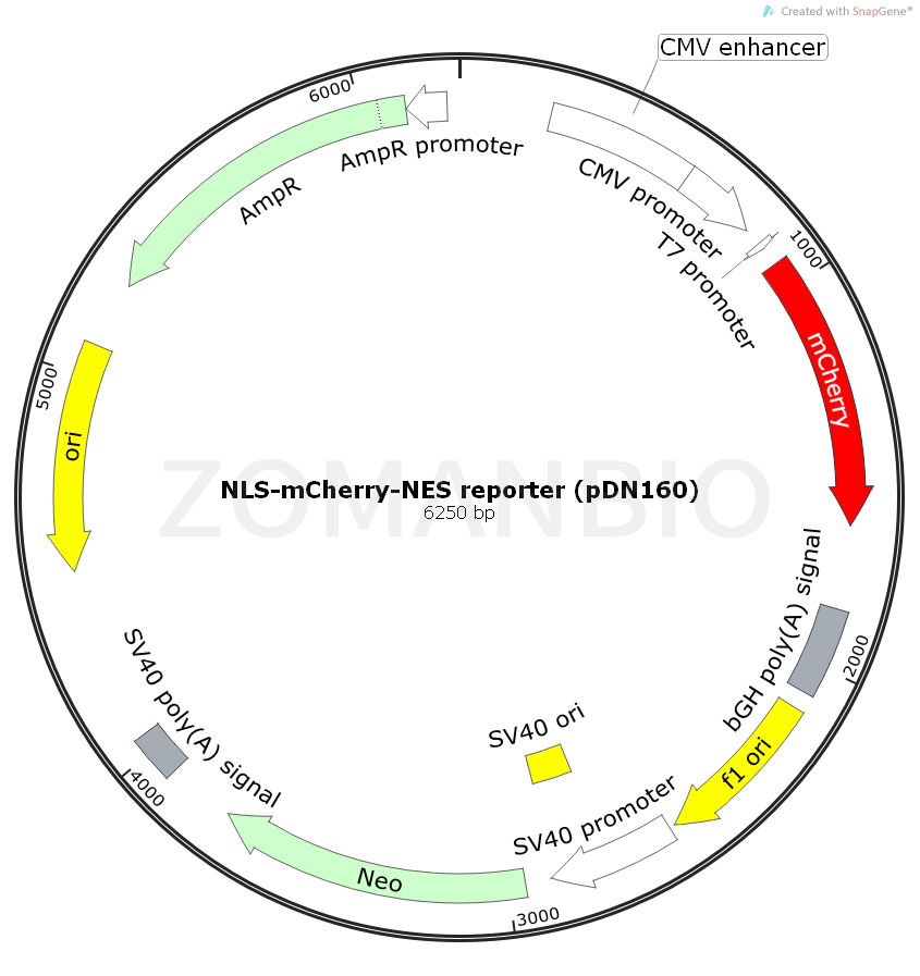 ZK2088 NLS-mCherry-NES reporter (pDN160)哺乳熒光質(zhì)粒.txt